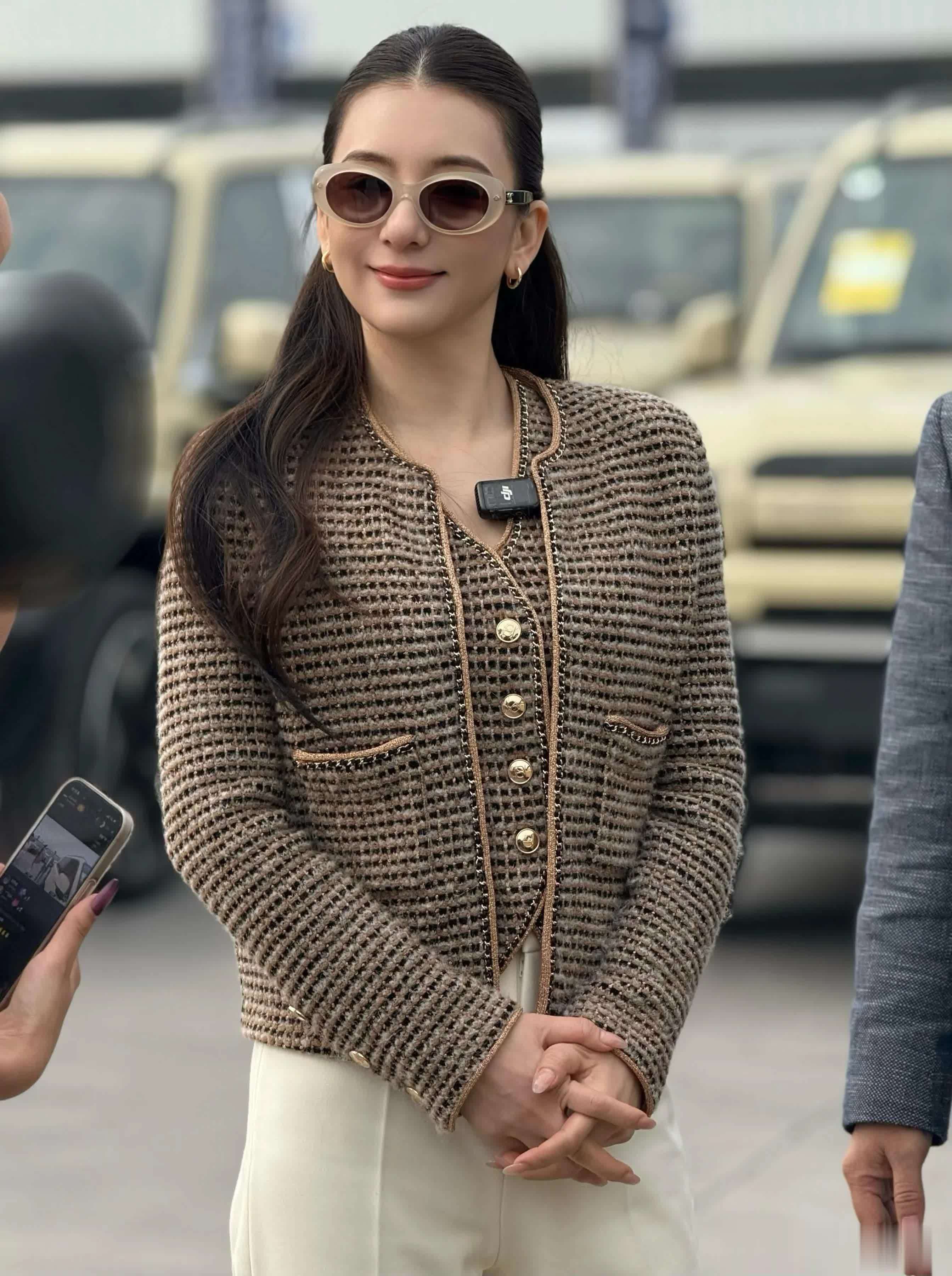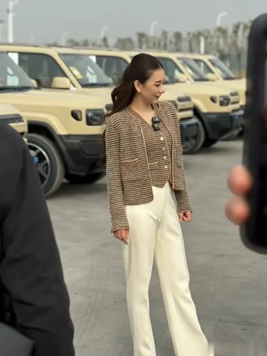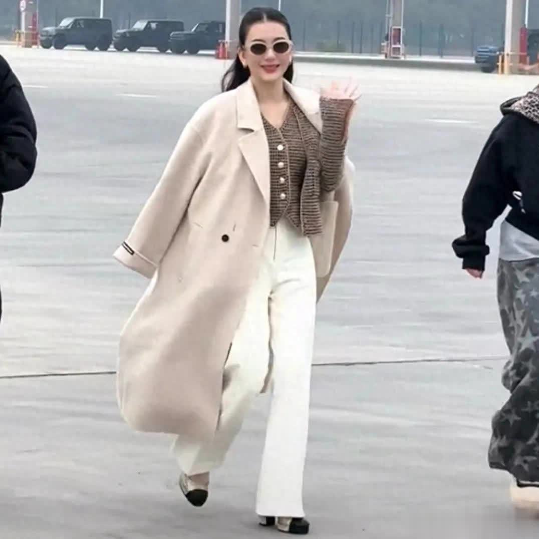当日,方媛身穿咖色上衣和白色长裤,披着一件白色长款大衣,脚踩厚底高跟鞋,一身利落打扮优雅大气,走路带风尽显气场。她戴着墨镜遮面,见镜头微笑挥手打招呼,看起来星范十足。